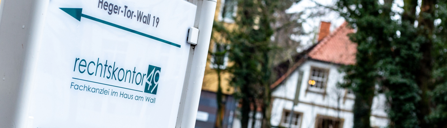 Außerhalb dieser Zeiten können Sie Ihr Anliegen per E-Mail unter info@rechtskontor49.de an uns richten, Unterlagen per Post und per Fax einreichen oder hinterlassen Sie eine Nachricht auf dem Anrufbeantworter.